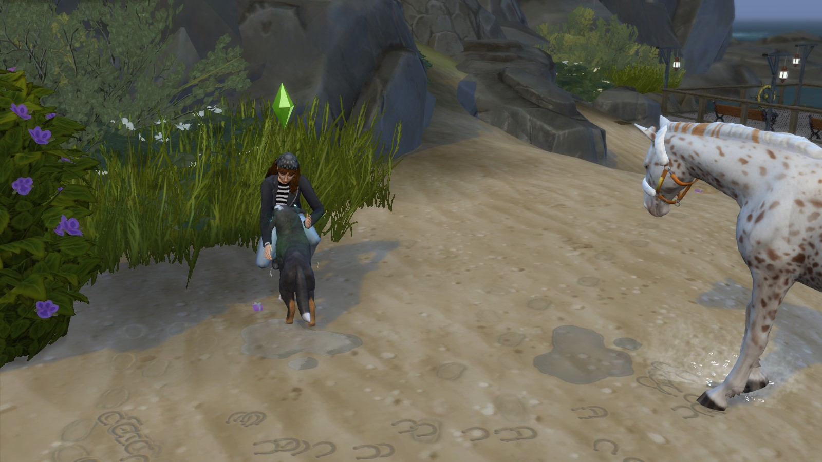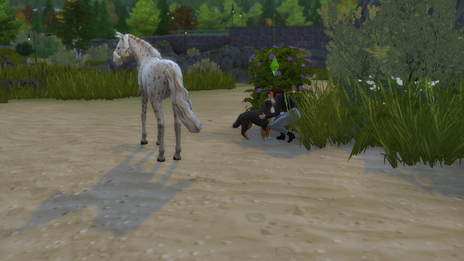 So they flung themselves off of Pony (who wasn’t very pleased) and spent a good 30 minutes trying to lure this puppy to Brindleton Pawspital. (BTW Sim-Jakob has no idea any of this has happened yet.) The pup was finally awake long enough to interact with my Simself for more than a quick hi and bye. It took many treats and snuggles, but this puppy trusted my Sim and knew it would be in good care.